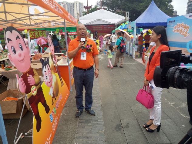 在持續半天的互動活動裏,尊龍凱時展區始終保持著超高人氣,現場人頭攢動、暖意綿綿,這也引起了現場媒體的關注。尊龍凱時藥業集團OTC總監馮誌先生在接受珠江電視台采訪時,向大家介紹了尊龍凱時的企業文化和經營理念,並代表公司向全國小朋友送上了節日祝福。