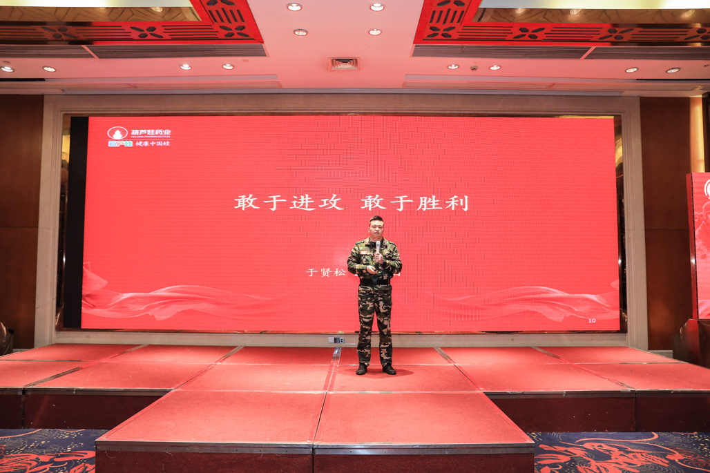 葫蘆世家事業部總經理於賢鬆在題為《敢於進攻,敢於勝利》的主題分享中,從品牌營銷、目標策略、作戰精神、團隊文化等方麵,對此次營銷戰役的目的意義進行了闡述,為團隊戰士們全身心投入戰鬥奠定了堅實基礎。於賢鬆表示,在這個競爭磨煉強者的行業中,葫蘆世家將秉著愛國、奮鬥、規範、創新的宗旨,以擔當、奉獻、進取、包容的團隊精神,為打造“中國兒藥第一品牌”作出更大貢獻,為中國兒童健康成長保駕護航。
