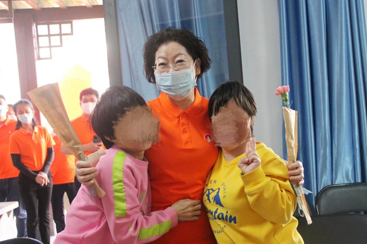 由於疫情管控原因,福利院處於半開放模式。唐鳳英院長帶領大家參觀了福利院的部分兒童活動場所,介紹了孩子們的生活和學習情況。劉景萍女士一行與孩子們親切互動交流,其樂融融。
