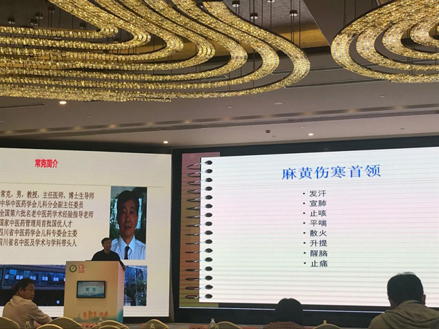 在21日下午的溫病分論壇上,中華中醫藥學會兒科分會副主任委員、四川省中醫藥學會兒科專委會主委、四川省名中醫及學術與學科帶頭人?私淌詵⒈砹恕陡倉謝滯,經方排名拙見》的精彩演講。他指出,根據自己多年的兒科臨床經驗,在治療小兒呼吸道感染的經方中,以麻黃為首的經方排頭籌,尤其是小兒肺熱咳喘顆粒的組方之一麻杏石甘湯在治療呼吸道感染引起的發熱、咳嗽、咯痰、氣喘等方麵療效顯著。