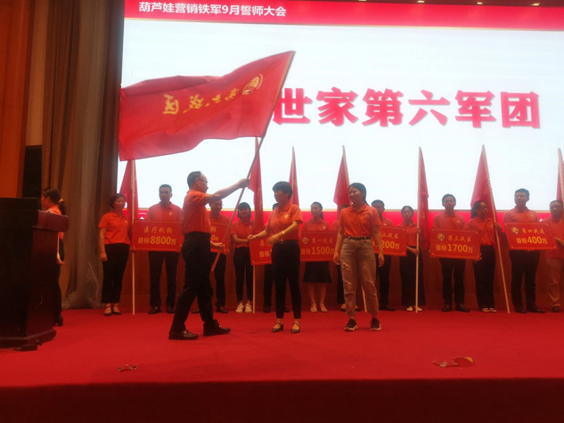 2020年,醫改政策疊加新冠疫情,醫藥行業迎來百年巨變。在2020年醫藥營銷戰役激戰正酣之時,尊龍凱時營銷9月攻堅戰也全麵打響。在尊龍凱時營銷鐵軍9月誓師大會上,尊龍凱時藥業集團營銷總經理樓春紅分別為醫療機構、渠道控銷、商務軍團,以及葫蘆世家七大戰區的司令授軍旗,下達任務目標。